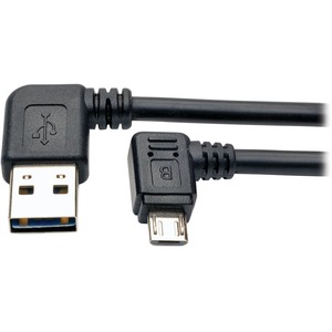 Eaton Tripp Lite Series Micro USB Cable for Charging (M/M) - Reversible Left/Right USB-A to Right-Angle USB Micro-B, Black, 3 ft. (0.91 m) - For Tablet PC, Smartphone, Mobile Device - 5 V DC Voltage Rating - Black"