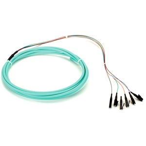 Black Box 3m LC OM3 50-Micron MM Fiber Pigtail 12-Strand OFNR PVC Aqua - 9.84 ft Fiber Optic Network Cable for Network Device - First End: 12 x LC - Male - Trunk Cable - OFNR - 50 µm - Aqua