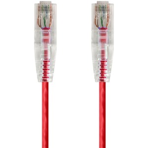 Monoprice SlimRun Cat6 28AWG UTP Ethernet Network Cable, 2ft Red - 2 ft Category 6 Network Cable for Network Device - First End: 1 x RJ-45 Network - Male - Second End: 1 x RJ-45 Network - Male - Patch Cable - 28 AWG - Red