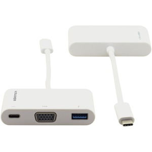 Kramer USB 3.1 Type-C to VGA & USB 3.0 & PD Adapter Cable - USB/VGA Video/Data Transfer Cable for Video Device, Projector, USB Hub, External Hard Drive, Notebook, Computer - First End: 1 x USB 3.1 Type C - Male - Second End: 1 x 15-pin HD-15 - Female, 1 x USB 3.0 Type A - Female, 1 x USB Type C - Female - White