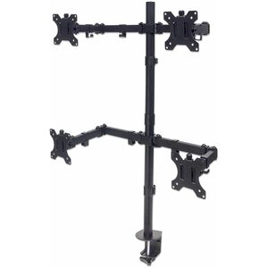 Manhattan 461566 Desk Mount for Monitor, LCD Monitor - Black - Height Adjustable - 4 Display(s) Supported - 13" to 32" Screen Support - 70.55 lb Load Capacity - 75 x 75, 100 x 100 - VESA Mount Compatible - Die-cast Metal, Steel