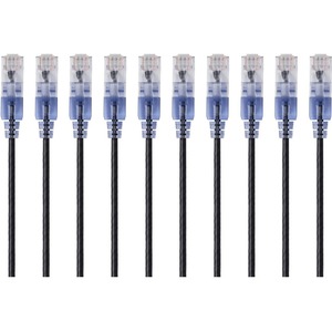 Monoprice 10-Pack, SlimRun Cat6A Ethernet Network Patch Cable, 10ft Black - 10 ft Category 6a Network Cable for PC, Server, Printer, Router, Network Media Player, VoIP Device, PoE-enabled Device, Network Device - First End: 1 x RJ-45 Network - Male - Second End: 1 x RJ-45 Network - Male - Patch Cable - 30 AWG - Black - 10