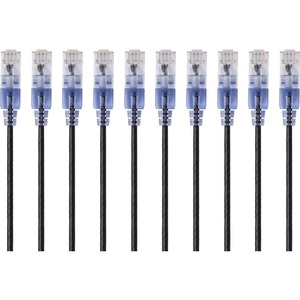 Monoprice 10-Pack, SlimRun Cat6A Ethernet Network Patch Cable, 3ft Black - 3 ft Category 6a Network Cable for PC, Server, Printer, Router, Network Media Player, VoIP Device, PoE-enabled Device, Network Device - First End: 1 x RJ-45 Network - Male - Second End: 1 x RJ-45 Network - Male - Patch Cable - 30 AWG - Black - 10