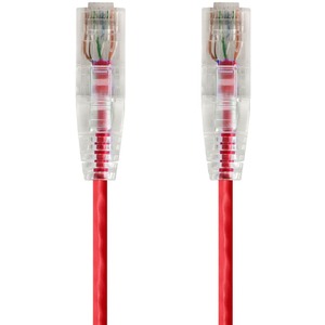 Monoprice SlimRun Cat6 28AWG UTP Ethernet Network Cable, 0.5ft Red - 6" Category 6 Network Cable for Network Device - First End: 1 x RJ-45 Network - Male - Second End: 1 x RJ-45 Network - Male - Patch Cable - 28 AWG - Red