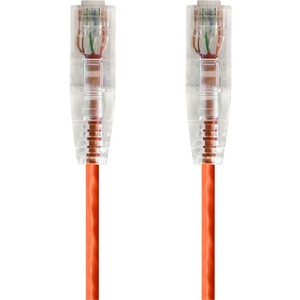 Monoprice SlimRun Cat6 28AWG UTP Ethernet Network Cable, 10ft Orange - 10 ft Category 6 Network Cable for Network Device - First End: 1 x RJ-45 Network - Male - Second End: 1 x RJ-45 Network - Male - Patch Cable - 28 AWG - Orange