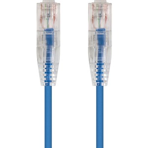Monoprice SlimRun Cat6 28AWG UTP Ethernet Network Cable, 1ft Blue - 1 ft Category 6 Network Cable for Network Device - First End: 1 x RJ-45 Network - Male - Second End: 1 x RJ-45 Network - Male - Patch Cable - 28 AWG - Blue