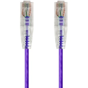 Monoprice SlimRun Cat6 28AWG UTP Ethernet Network Cable, 2ft Purple - 2 ft Category 6 Network Cable for Network Device - First End: 1 x RJ-45 Network - Male - Second End: 1 x RJ-45 Network - Male - Patch Cable - 28 AWG - Purple