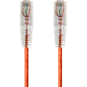 Monoprice SlimRun Cat6 28AWG UTP Ethernet Network Cable, 5ft Orange - 5 ft Category 6 Network Cable for Network Device - First End: 1 x RJ-45 Network - Male - Second End: 1 x RJ-45 Network - Male - Patch Cable - 28 AWG - Orange