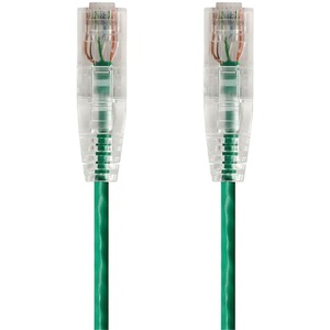 Monoprice SlimRun Cat6 28AWG UTP Ethernet Network Cable, 7ft Green - 7 ft Category 6 Network Cable for Network Device - First End: 1 x RJ-45 Network - Male - Second End: 1 x RJ-45 Network - Male - Patch Cable - 28 AWG - Green