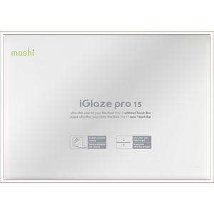 Moshi's iGlaze offers ultra-slim, lightweight, and durable protection for your 15-inch MacBook Pro. Its two-piece polycarbonate construction provides 360-degree protection to your laptop. Includes raised rubber feet and enhanced scratch protection for extra long life and vent holes to assist heat dispersion. LIGHTWEIGHT AND DURABLE Ultimate protection iGlaze is made from a flexible yet durable material to offer the best possible protection and resist cracking and spitting for a long product life. RAISED RUBBER FEET Get a grip Anti-slip material for added stability on any surface, with a raised base positioning to allow air to circulate under your MacBook for enhanced cooling. MICRO-CLIP DESIGN Snap it on iGlaze is made from a flexible material for easy installation, with precision snap clips to hold it snuggly to your computer's frame without affecting the opening and closing of your screen. SCRATCH-RESISTANT Can't scratch that A specialized anti-scratch coating keeps iGlaze (and your MacBook) looking new for longer. VENT AND PORT CUT OUTS Access all areas Custom cut-out panels allow for unobstructed airflow and more efficient heat dissipation as well as full access to all of your MacBook's ports.