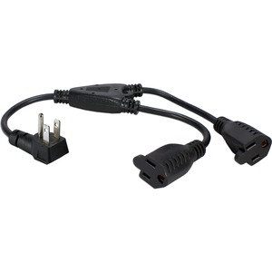 QVS 4-Pack 12 Inches 90degree Flat-Plug OutletSaver AC Power Splitter Adaptor - For UPS, Power Strip - Black - 1 ft Cord Length - NEMA 5-15P / NEMA 5-15R - 4