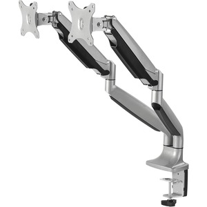SIIG's High Premium Aluminum Gas Spring Desk Mount - Dual is a full-motion desktop mount designed to accommodate two flat panel monitors for an instant ergonomic desktop setting. It features gas spring assisted full-motion arms to provide smooth and effortless angle and height adjustments for the most comfortable viewing position. High premium quality aluminum construction is built to last for securely supporting two monitors from 13" to 32" with weight up to 19.8 lbs each. Heavy-duty C-clamp and grommet mount bases are both included for convenient mounting options to enable quick and easy installation to most desks and tables. User-friendly cable management system is integrated to keep cables neatly organized and out of the way. This space-saving full motion dual monitor desk mount is an ideal desktop organizing tool for use in business or home office to provide ergonomic comfort, reduce desktop clutter and increase productivity.