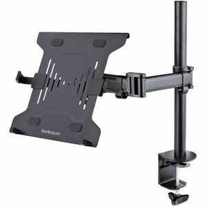 StarTech.com Laptop Desk Mount, Monitor and Laptop Arm Mount, Displays up to 34" (17.6lb/8kg), VESA Laptop Tray Arm, Clamp / Grommet - This dual-purpose black laptop mount for desk allows mounting a laptop on the ventilated VESA laptop tray or a 27in or 34in ultrawide display; Capacity 8kg/17.6lb monitor or 4.5kg/9.9lb laptop - Adjustable padded arms hold laptop (9.4-16.5in wide)