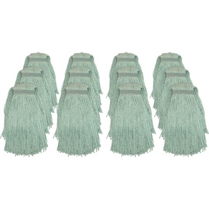 Genuine Joe Blended Yarn Mophead - #20 - Durable, Cut Ends, Narrow Headband - Yarn - Green - 12 / Carton