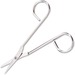 Unique shape and design of these compact scissors makes them ideal for cutting bandages quickly and efficiently in a first aid emergency. 4-1/2" scissors are nickel-plated for durability. Compact size will easily fit in your first-aid kit.