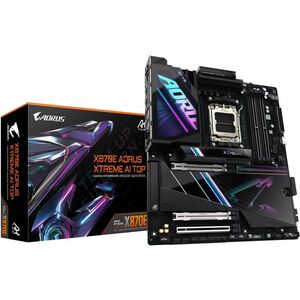 Aorus Ultra Durable X870E AORUS XTREME AI TOP Gaming Desktop Motherboard - AMD X870E Chipset - Socket AM5 - Extended ATX - Ryzen 9, Ryzen 8, Ryzen 7 Processor Supported - 256 GB DDR5 SDRAM Maximum RAM - DIMM, UDIMM - 4 x Memory Slots - Gigabit Ethernet - 2.5Gigabit Ethernet - IEEE 802.11 a/b/g/n/ac/ax/be - HDMI - DisplayPort - 4 x SATA Interfaces