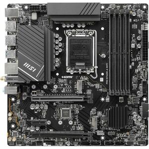 MSI PRO B760M-A WIFI Gaming Desktop Motherboard - Intel B760 Chipset - Socket LGA-1700 - Micro ATX - Pentium, Core, Celeron Processor Supported - 192 GB DDR5 SDRAM Maximum RAM - DIMM, UDIMM - 4 x Memory Slots - Gigabit Ethernet - 2.5Gigabit Ethernet - IEEE 802.11 a/b/g/n/ac/ax - HDMI - DisplayPort - 4 x SATA Interfaces