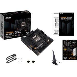 ASUS TUF GAMING B650M-PLUS WIFI takes all the essential elements of the latest AMD Ryzen 7000-series processors and combines them with game-ready features and proven durability. Engineered with military-grade components, an upgraded power solution and a comprehensive cooling system, this motherboard goes beyond expectations with rock-solid and stable performance for marathon gaming. TUF GAMING motherboards also undergo rigorous endurance testing to ensure that they can handle conditions where others may fail. Aesthetically, this model incorporates rugged off-black and geometric design elements to reflect the dependability and stability that defines the TUF GAMING series.