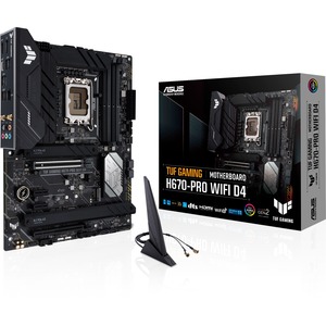 ASUS TUF GAMING H670-PRO WIFI D4 takes all the essential elements of the latest Intel® processors and combines them with game-ready features and proven durability. Engineered with military-grade components, an upgraded power solution and a comprehensive cooling system, this motherboard offers rock-solid and stable performance for marathon gaming. Aesthetically, TUF GAMING H670-PRO WIFI D4 sports the new TUF Gaming logo and incorporates simple geometric design elements to reflect the dependability and stability that defines the TUF Gaming series.