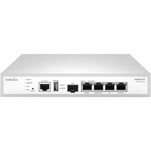 EnGenius FitXpress Gateway XG60-FIT - 4 Port - 10/100/1000Base-T, 1000Base-X - Gigabit Ethernet - 3 Gbit/s Firewall Throughput - DES, 3DES, AES (256-bit), MD5, SHA-1, SHA-2 512-bit - 50 VPN - 3 x RJ-45 - 1 Total Expansion Slots - Wall Mountable