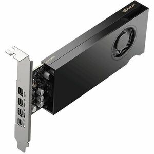 NVIDIA RTX™ 2000E Ada Generation Professional Graphics Board - NVIDIA Ada Lovelace Architecture, 16GB GDDR6 Memory with ECC, 2,816 CUDA cores, 22 third-gen RT Cores, 88 fourth-gen Tensor Cores, 224 GB/s peak memory bandwidth, 1x NVENC + AV1 encode and 1x NVDEC + AV1 decode, 4x Mini DisplayPort 1.4a connectors, PCIe Express 4.0 x8, half-height, low-profile, single-slot form factor PCIe card, active fansink, 50 W total power consumption, 4 x latching mDP to DP adapters