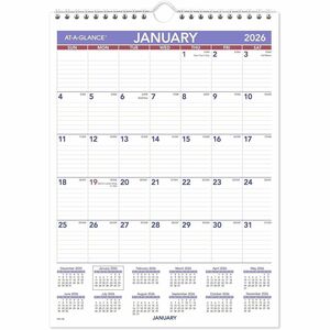 At-A-Glance Wall Calendar - Small - Julian Dates - Monthly - 12 Month - January 2025 - December 2025 - 1 Month Single Page Layout - 8" x 11" Sheet Size - White Sheet - 1.06" x 1.50" Block - Wire Bound - White - Chipboard, Paper - Hanging Loop, Reference Calendar, Bleed Resistant, Ruled Daily Block - 1 Each
