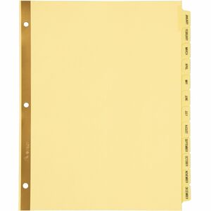 Avery® Laminated Dividers - Gold Reinforced - 12 x Divider(s) - Printed Tab(s) - Month - January-December - 12 Tab(s)/Set - 8.5" Divider Width x 11" Divider Length - Letter - 3 Hole Punched - Buff Paper Divider - 30% Recycled - Laminated Tab, Gold Rip Proof Holes, Single Gold Reinforcement, Reinforced Edges, Punched - 12 / Set
