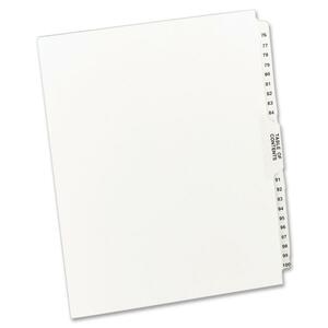 Avery® Premium Collated Legal Exhibit Dividers with Table of Contents Tab - Avery Style - 26 x Divider(s) - Printed Tab(s) - Digit - 76-100 - 26 Tab(s)/Set - 8.5" Divider Width x 11" Divider Length - Letter - White Paper Divider - White Tab(s) - 20% Recycled - Reinforced Tab, Unpunched - 25 / Set