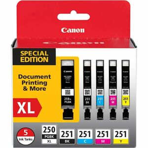 Canon PGI-250XL/CLI-251 Original Standard Yield Inkjet Ink Cartridge - Value Pack - Black, Cyan, Magenta, Yellow - 5 Pack