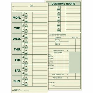 TOPS Monday-Sunday Time Cards - Double Sided Sheet - 3.50" x 8.50" Sheet Size - Yellow - Manila Sheet(s) - Green Print Color - 500 / Box