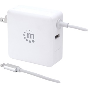 Manhattan Wall/Power Charger (Euro 2-pin), USB-C and USB-A ports, USB-C Output: 60W / 3A, USB-A Output: 2.4A, USB-C 1m Cable Built In, White, Three Year Warranty, Box - 5 V DC, 9 V DC, 12 V DC, 15 V DC, 19 V DC, 20 V DC Output - 3 A